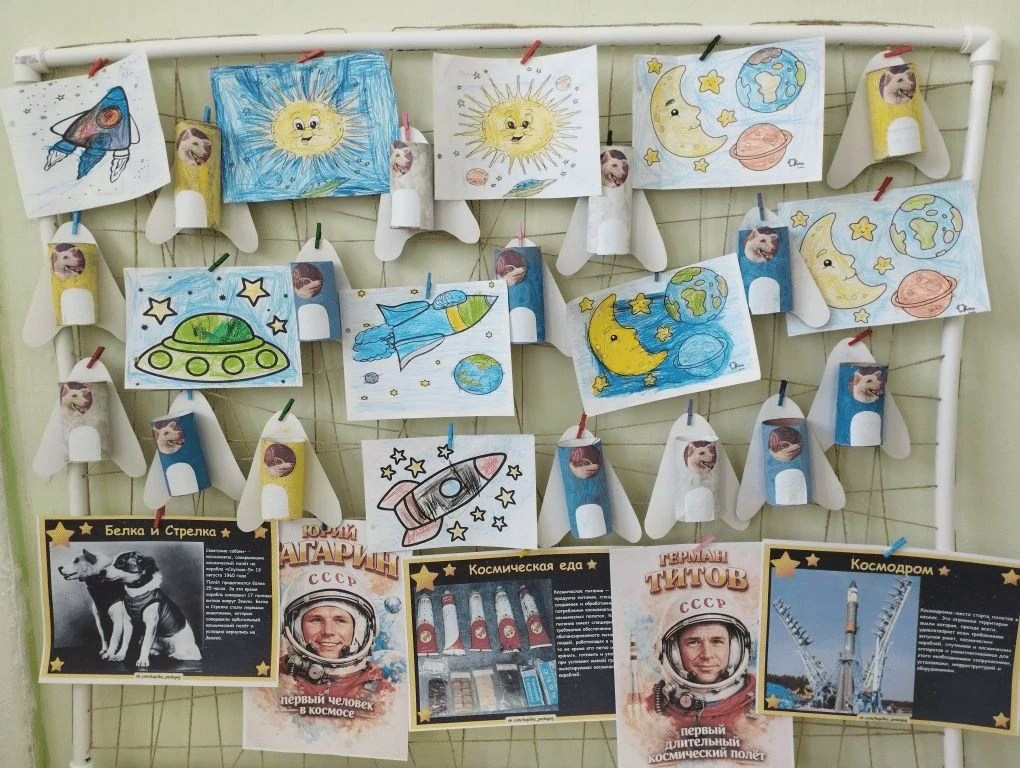 В детском саду прошла тематическая неделя посвящённая Дню космонавтики. Ребята группы “Смешарики” узнавали о космосе и о космонавтах. Познакомились с солнечной системой, узнали новое про планеты. Рассматривали иллюстрации с изображением загадочного мира звёзд и планет, читали сказки и отгадывали загадки. Знания закрепили в творческих работах. Дети с удовольствием делали различные поделки, рисовали, конструировали. Неделя космоса прошла интересно и познавательно.