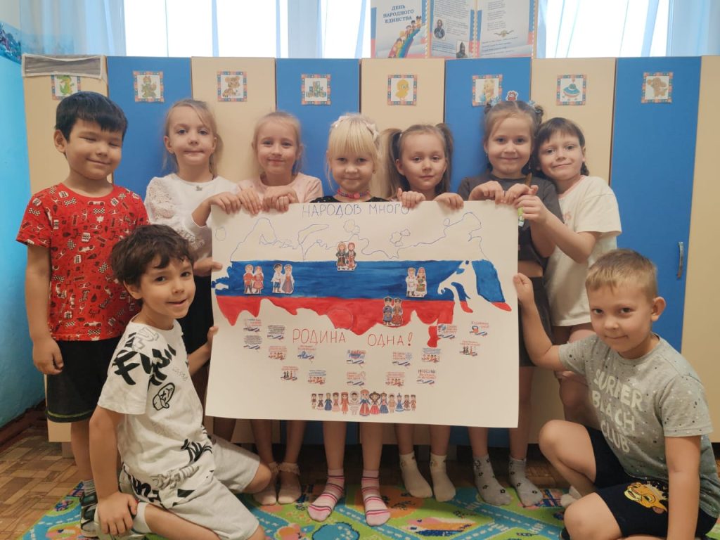 4 ноября в России отмечается праздник – День народного единства. Этот день занимает особое место среди государственных праздников современной России. С целью формирования у детей представлений об истории России, ее героическом прошлом, а также с целью расширения представлений детей о народах, населяющих Россию, в нашем детском саду были проведены мероприятия, посвящённые «Дню народного единства». Ребята узнали о том, как велика, красива и богата ресурсами наша страна. Узнали об историческом прошлом России, закрепили знания о государственных символах, познакомились с народами, населяющими нашу страну, национальными костюмами, обычаями, играми. Дети посетили музей, где выставлены куклы разных национальностей в традиционных костюмах. Изготовили газету “Народов много – Родина одна”. Так же прошла беседа по коренные народам Алтайского края.