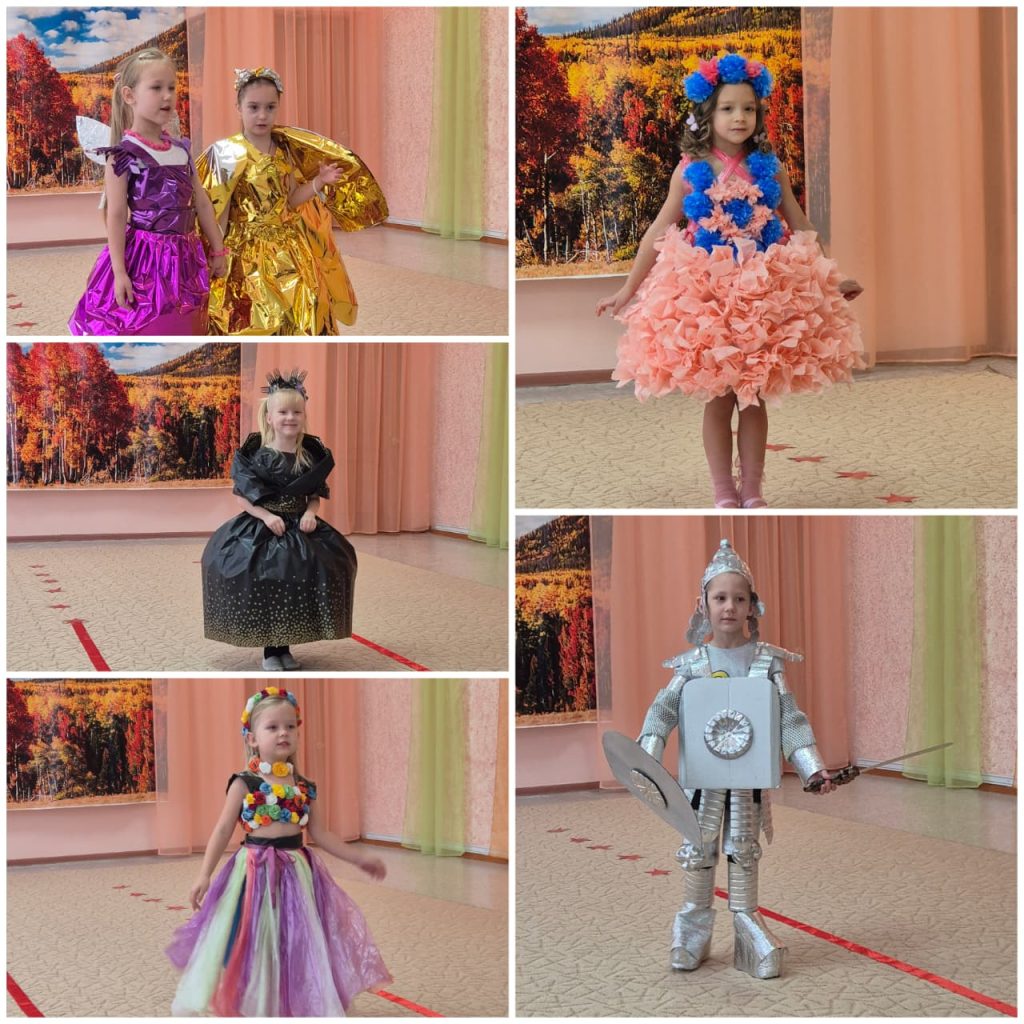 Юные модели демонстрировали свои костюмы из бросового материала (пакеты для мусора, салфетки, картон, бумагу, перчатки, бутылки и многое другое). Каждый образ получился неповторимым. Это был фейерверк красок, эмоций, чего-то неожиданного и очень креативного!