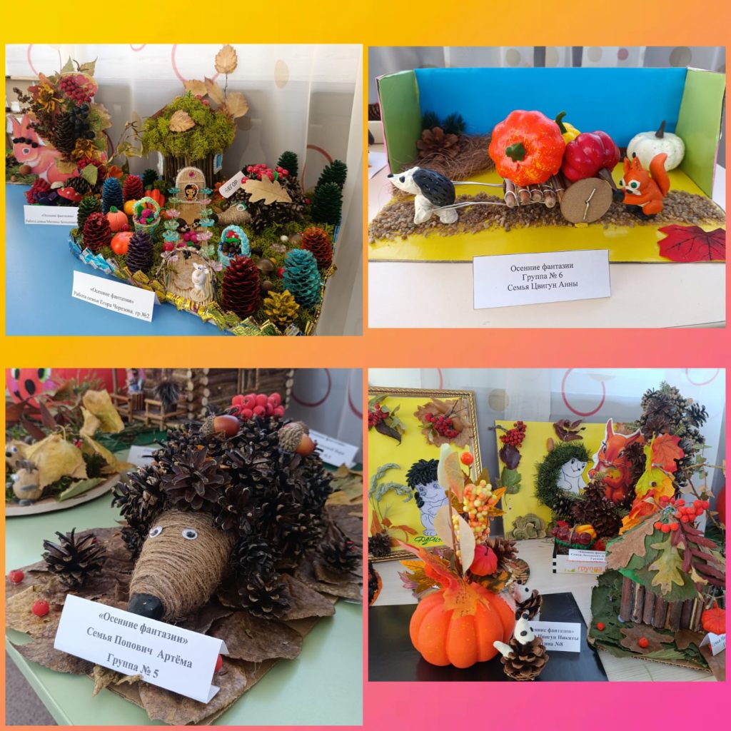 В нашей группе ДОУ была оформлена выставка поделок из природного материала «Осенние фантазии». Участниками были предоставлены разнообразные работы, выполненные из природного и материала и в самых разных техниках: объемная аппликация, конструирование и другие.
