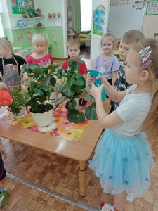 Начиная с трехлетнего возраста мы старались развивать в детях наблюдательность, любознательность, бережное отношение к растениям. Мы учим детей видеть вокруг себя прекрасное, восхищаться красотой, окружающей их. Ухаживая за растениями, у детей воспитывается трудолюбие. Никто не стоит в стороне, когда надо поливать растения, рыхлить почву, убирать сухие листья.